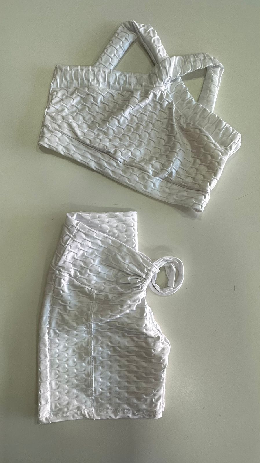 Conjunto short Jaquard Brocado branco com empina Tam Único